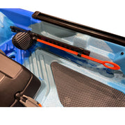 Beavertail rudder system (shown in the up position) provides additional steering control if required. System includes tip toe controls for the footrests
